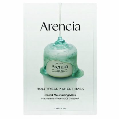 ARENCIA Holy Hyssop Sheet Mask soothes and hydrates skin with calming botanical extracts to support clarity and comfort.