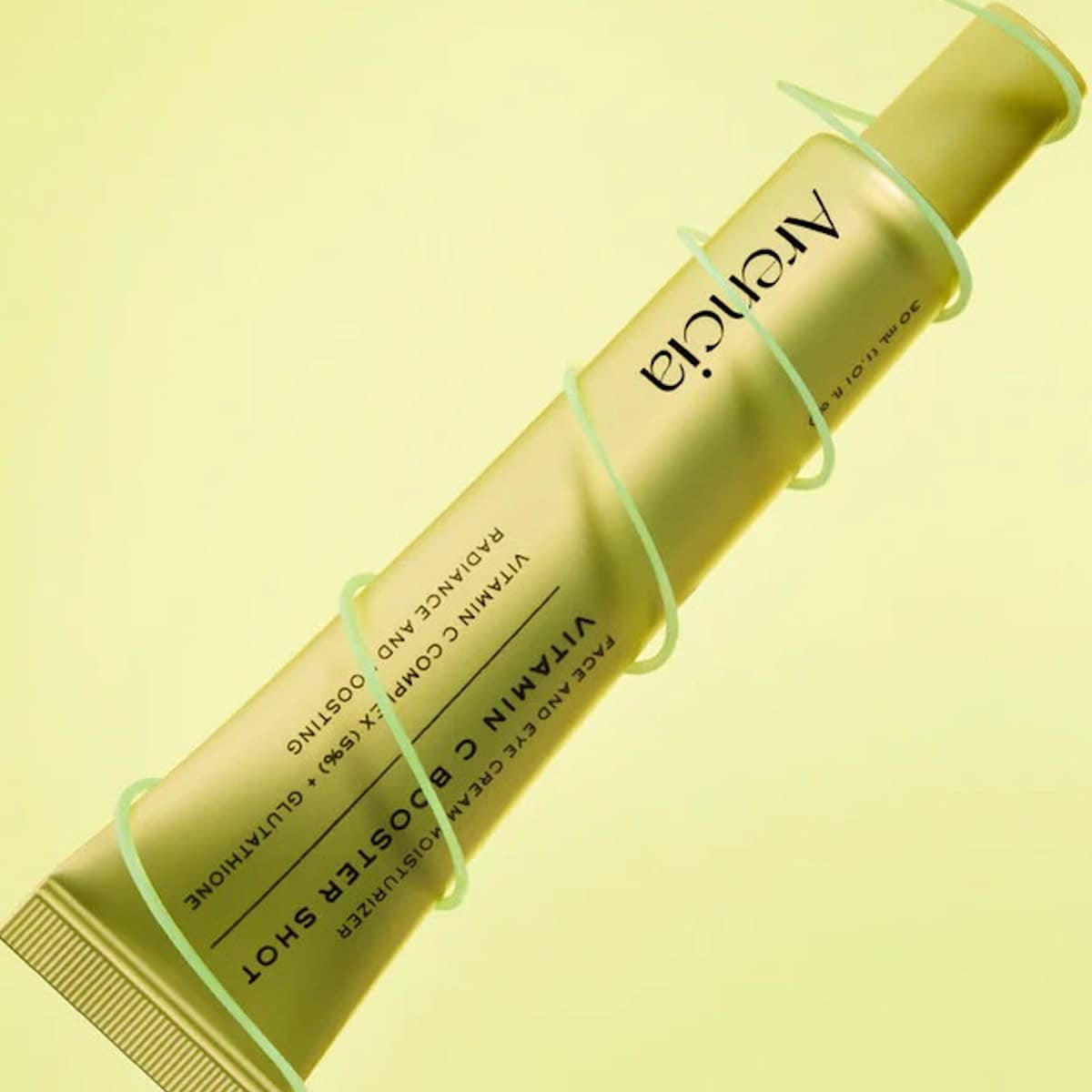 ARENCIA Vitamin C Booster Shot brightens and energises skin with stabilized vitamin C and antioxidants for a clearer radiant complexion.