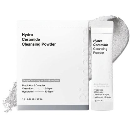 A Hydro Ceramide Cleansing Powder which is a gentle enzymatic cleanser with ceramides, hyaluronic acid and niacinamide to cleanse, hydrate and support skin barrier.