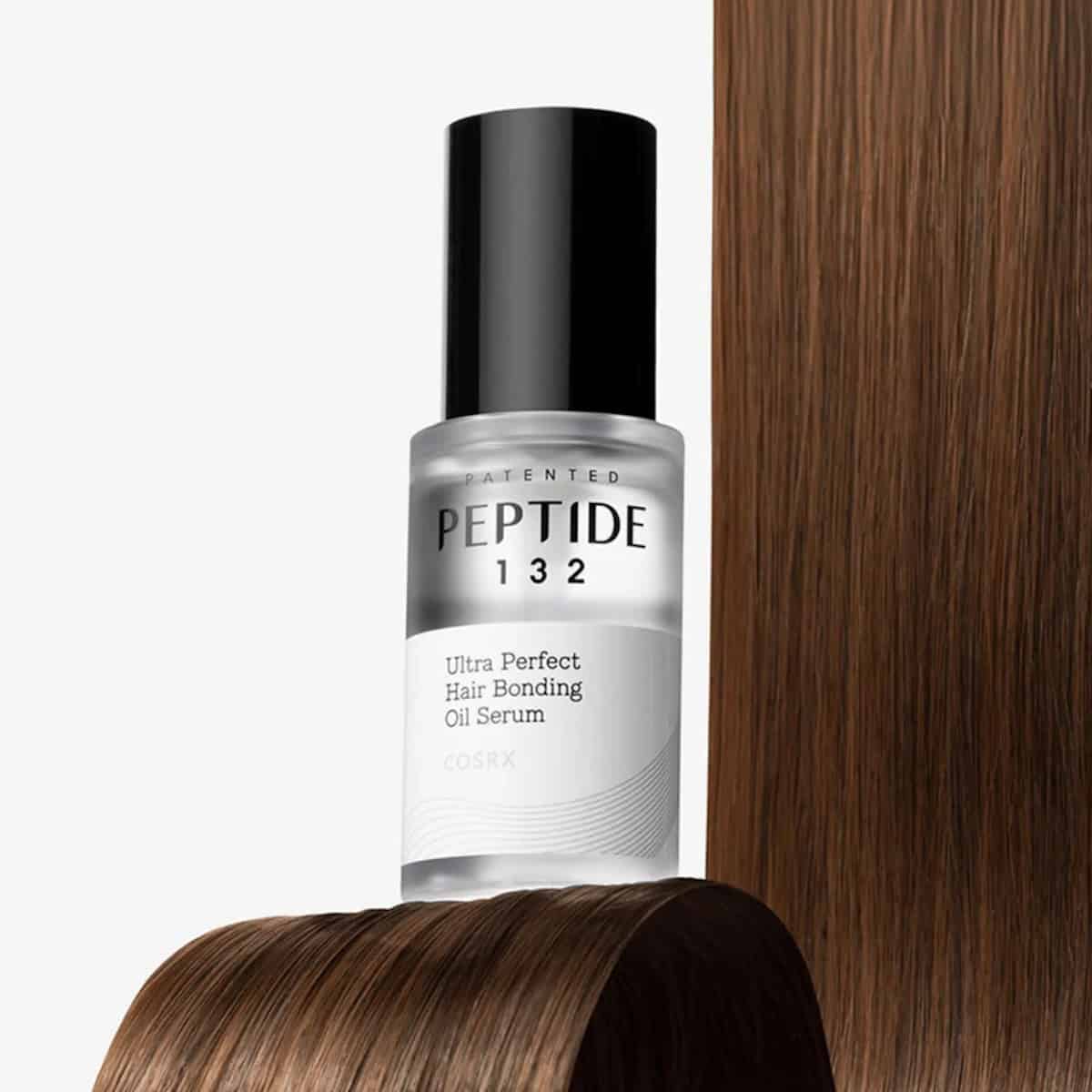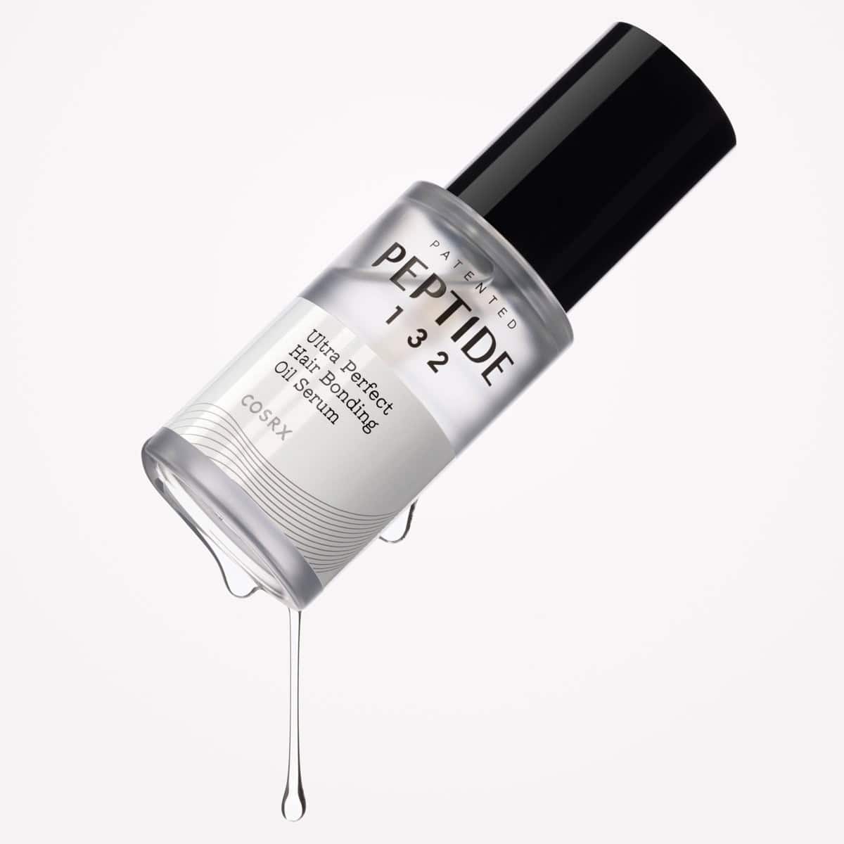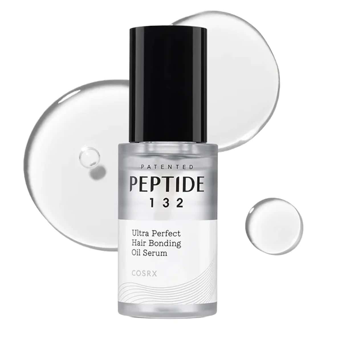 COSRX Peptide-132 Ultra Perfect Hair Bonding Oil Serum is a lightweight bonding oil designed to repair damaged hair while adding shine and smoothness.