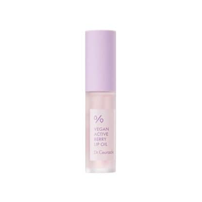 DR. CEURACLE Vegan Berry Lip Oil hydrates, plumps, and smooths with plant collagen, jojoba, pomegranate, resveratrol, cranbetinol, and vitamin E for glossy, healthy lips.
