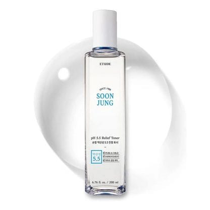 ETUDE Soon Jung pH 5.5 Relief Toner delivers gentle hydration and barrier support for sensitive or irritated skin.