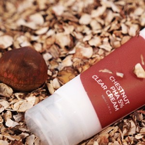 ISNTREE Chestnut Clear Cream is a mild exfoliating cream containing chestnut extract and 5% PHA, helping gently dissolve dead skin cells and tighten pores.