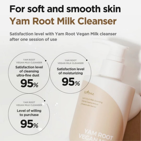 Isntree’s Yam Root Vegan Milk Cleanser is a super gentle cream cleanser formulated with Yam, oatmeal and rice to remove impurities from the skin.