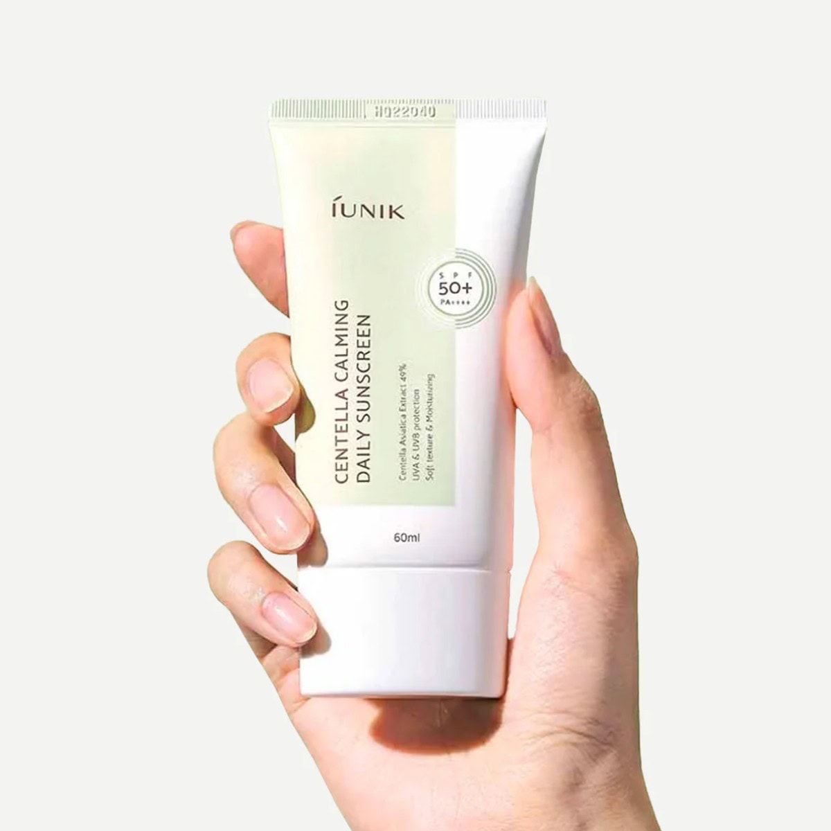 Shield and calm your skin with IUNIK Centella Calming Daily Sunscreen, offering SPF 50+ PA++++ protection with Centella Asiatica and Niacinamide.