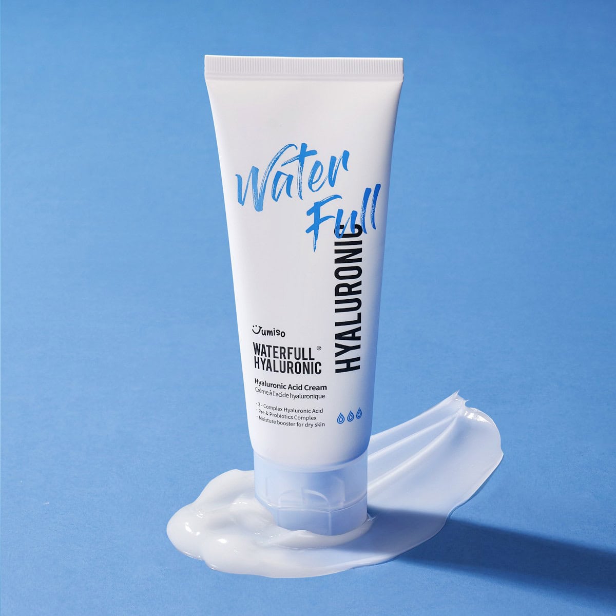 JUMISO Waterfull Hyaluronic Cream provides deep, long-lasting hydration with Hyaluronic Acid, supports skin barrier health with Pre-Probiotics Complex, and absorbs quickly.