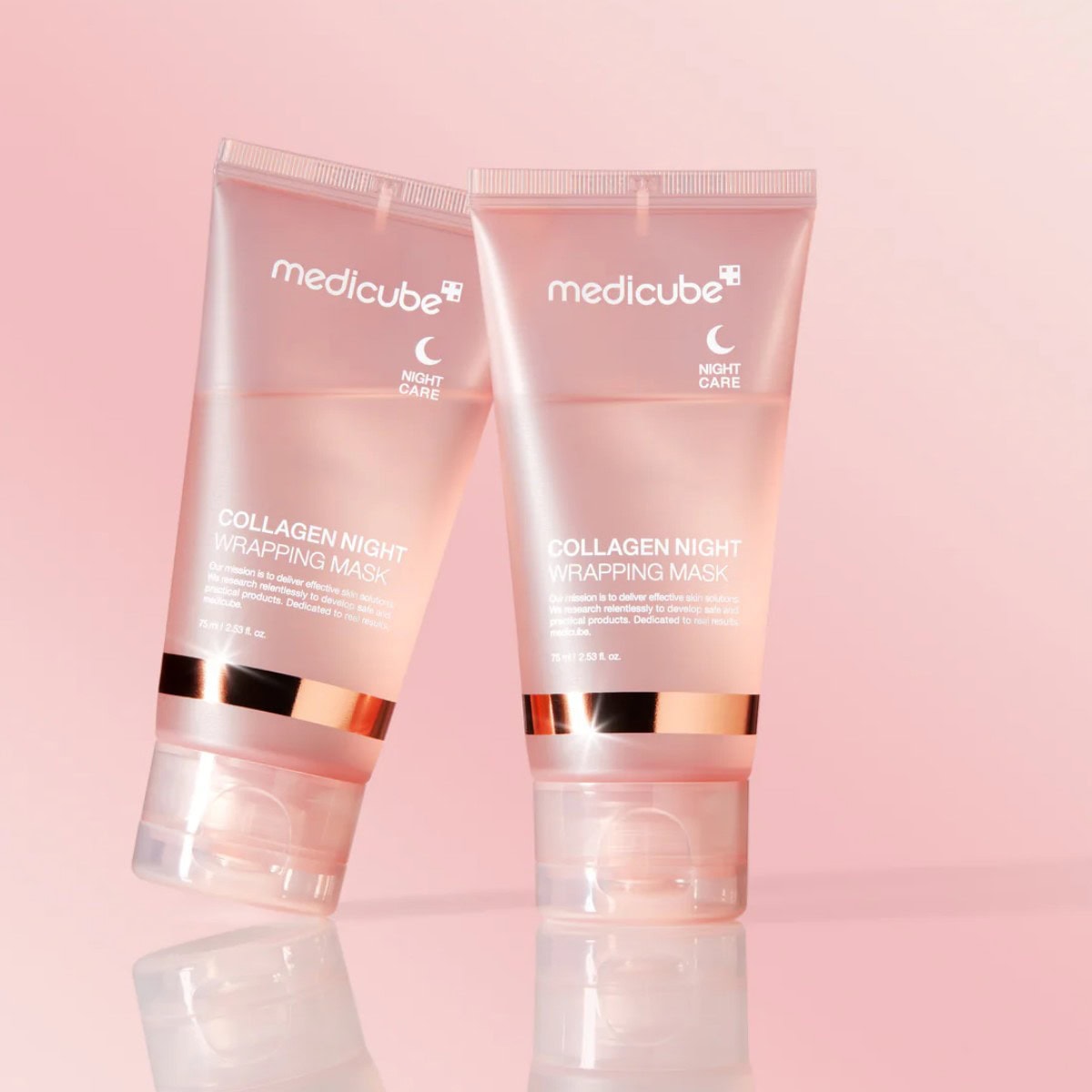 Replenish your skin overnight with MEDICUBE Collagen Night Wrapping Mask, featuring collagen and peptides for hydration and elasticity.