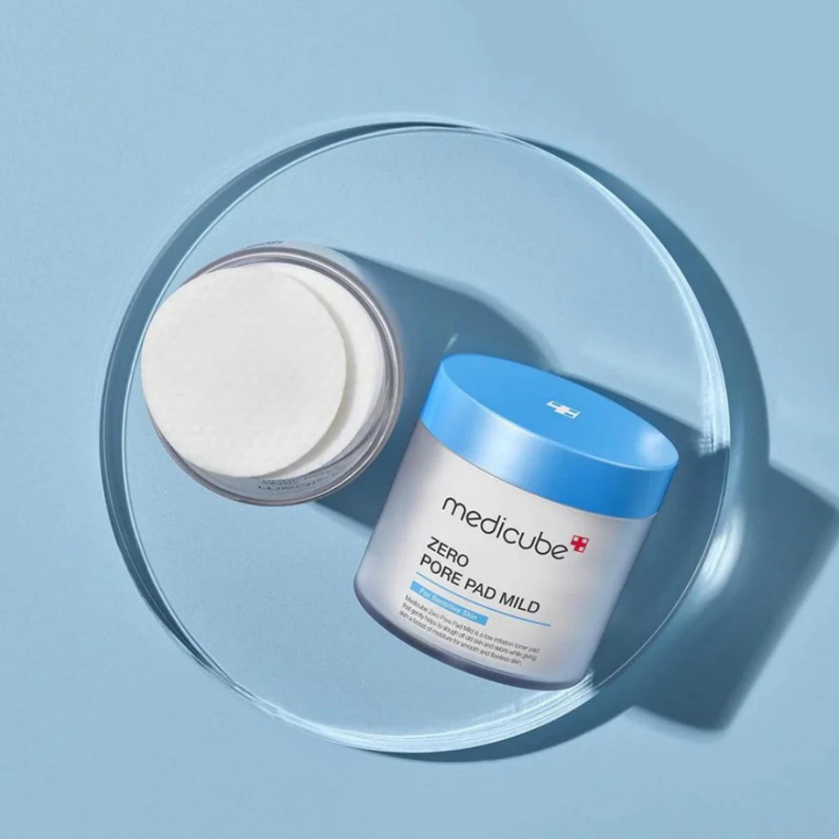 MEDICUBE Zero Pore Pad Mild gently exfoliates and minimizes pores with salicylic acid and PHA, suitable for sensitive skin.