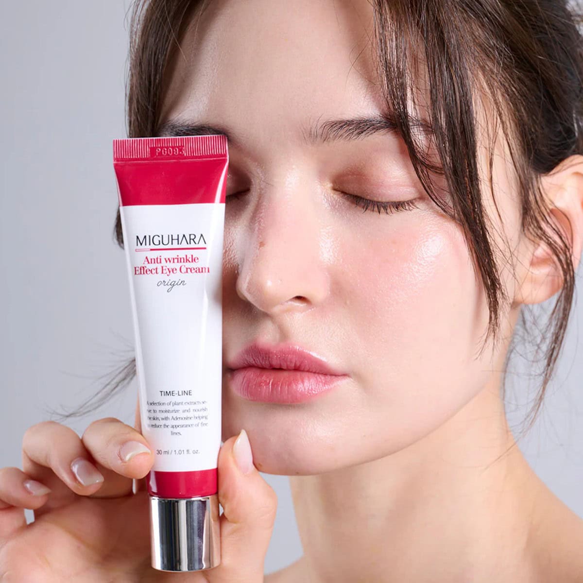 MIGUHARA Anti-Wrinkle Effect Eye Cream Origin is specially formulated to reduce fine lines and restore elasticity around the delicate eye area.
