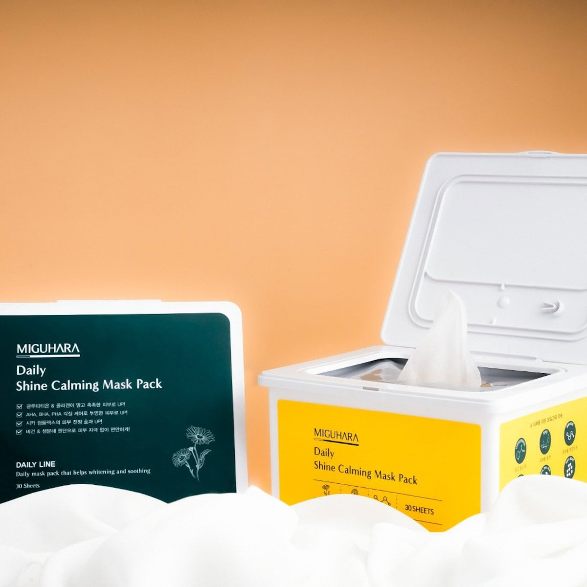 MIGUHARA Daily Shine Calming Mask Pack is designed for daily use to soothe and brighten the skin.