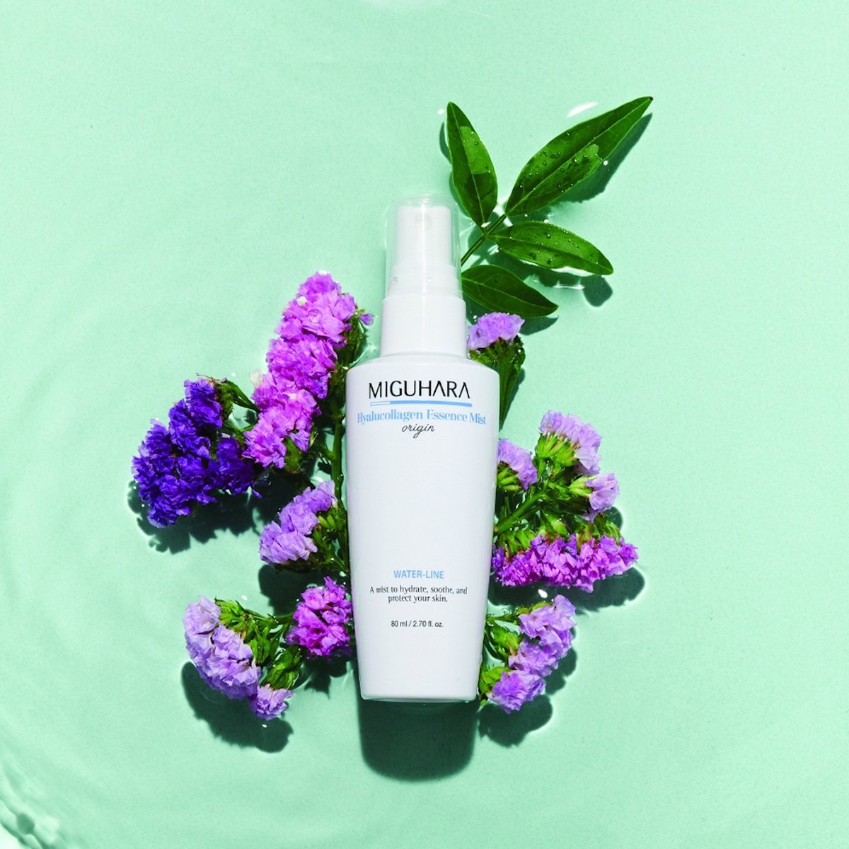 MIGUHARA’s Hyalucollagen Essence Mist Origin refreshes and hydrates with hyaluronic acid, collagen, and peptides.