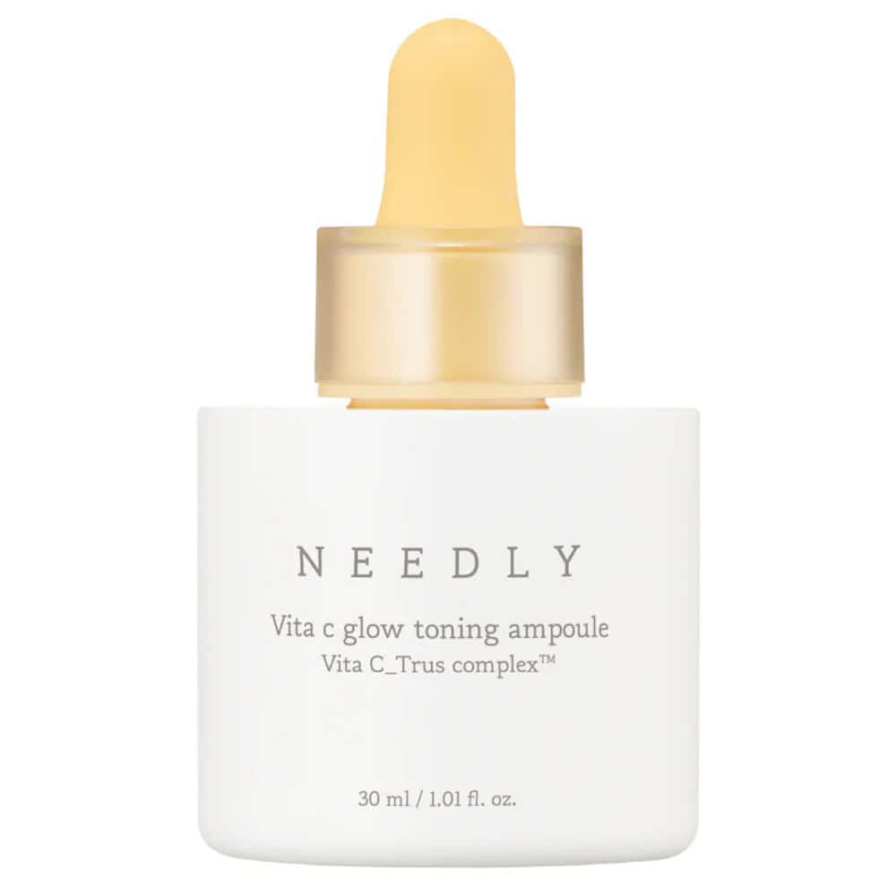 NEEDLY Vita C Glow Toning Ampoule brightens dull skin and supports even tone with vitamin C, niacinamide and antioxidant botanicals.