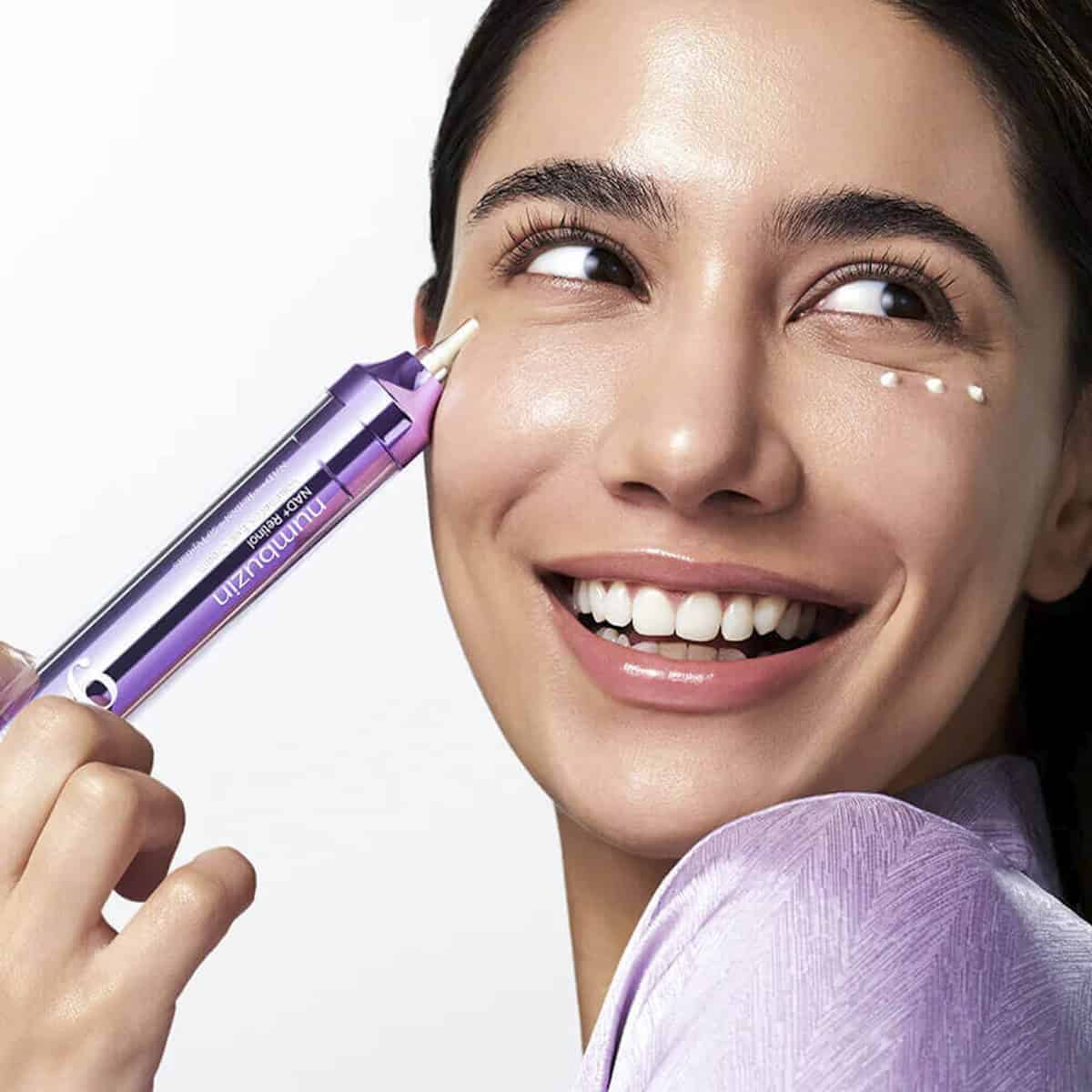 - Apply a small amount to the under eye area as the final step of skincare