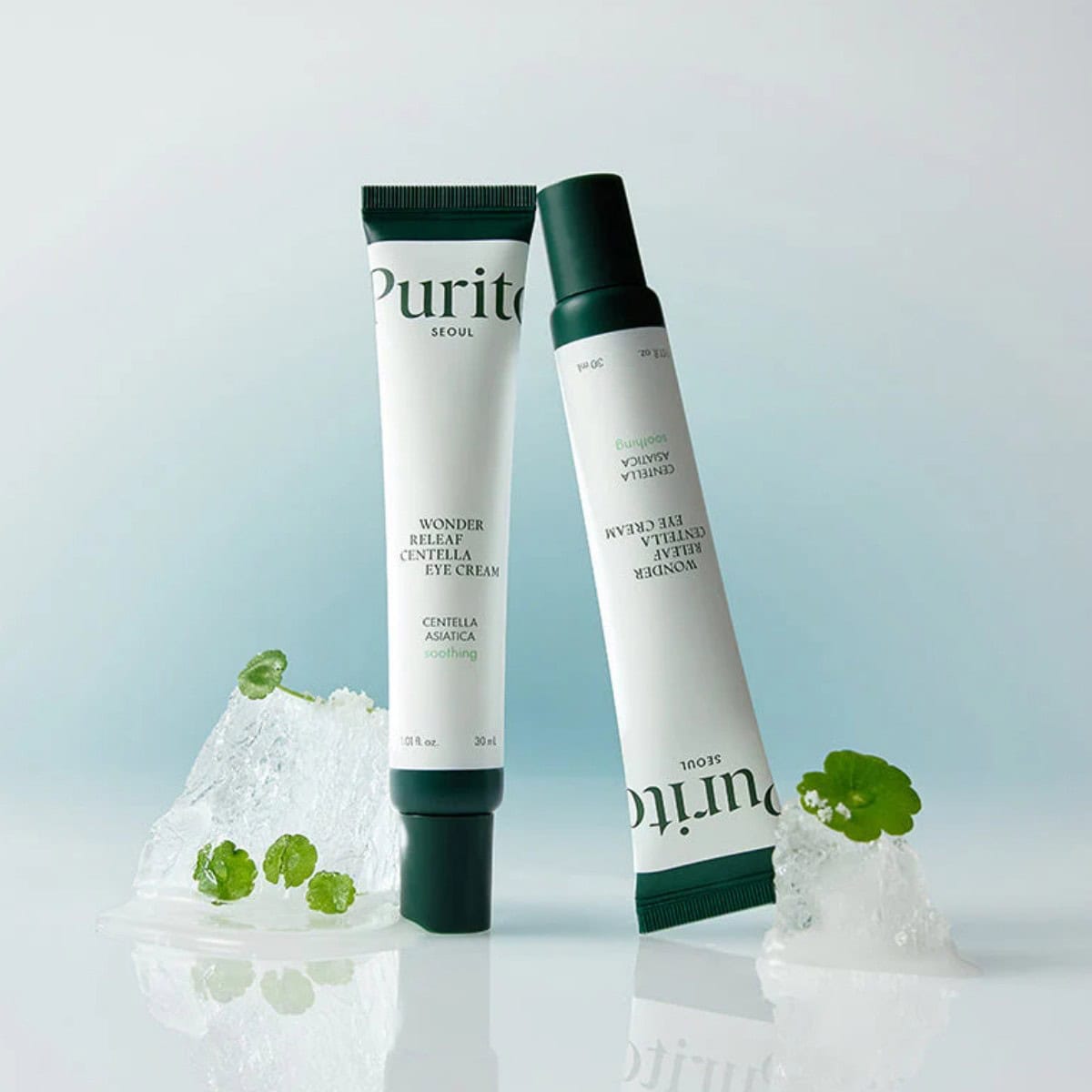 PURITO SEOUL Wonder Releaf Centella Eye Cream soothes and hydrates, reducing puffiness, fine lines, and dark circles around the delicate eye area.