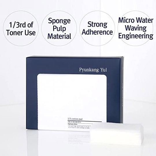 Pyunkang Yul 1/3 Cotton Pads – 160 pcs are made from a unique lint free sponge pulp and rayon blend which do not break or leave behind any fibres.