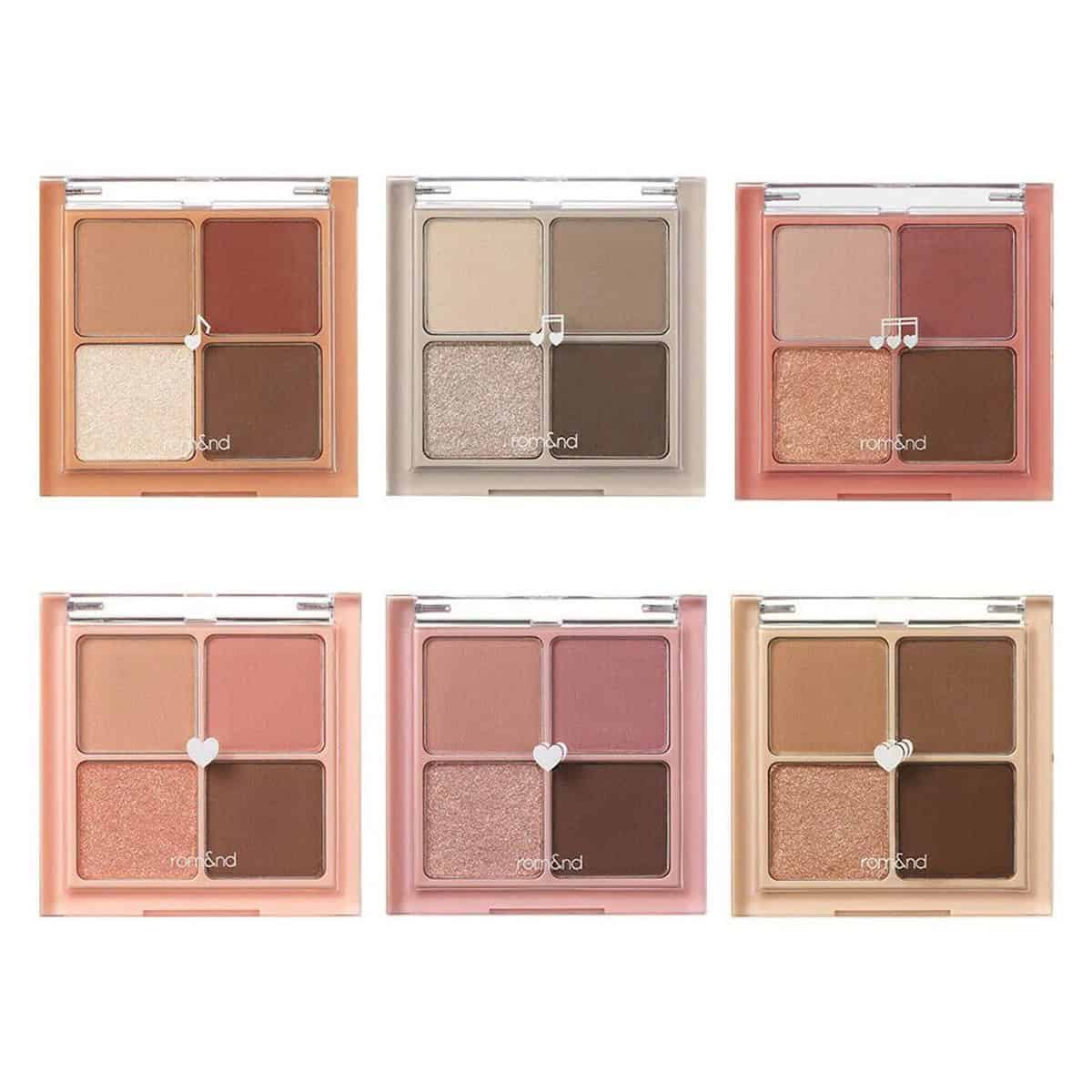 ROM&ND Better Than Eyes eyeshadow quad delivers soft matte and shimmer finishes with smooth texture and lasting payoff.
