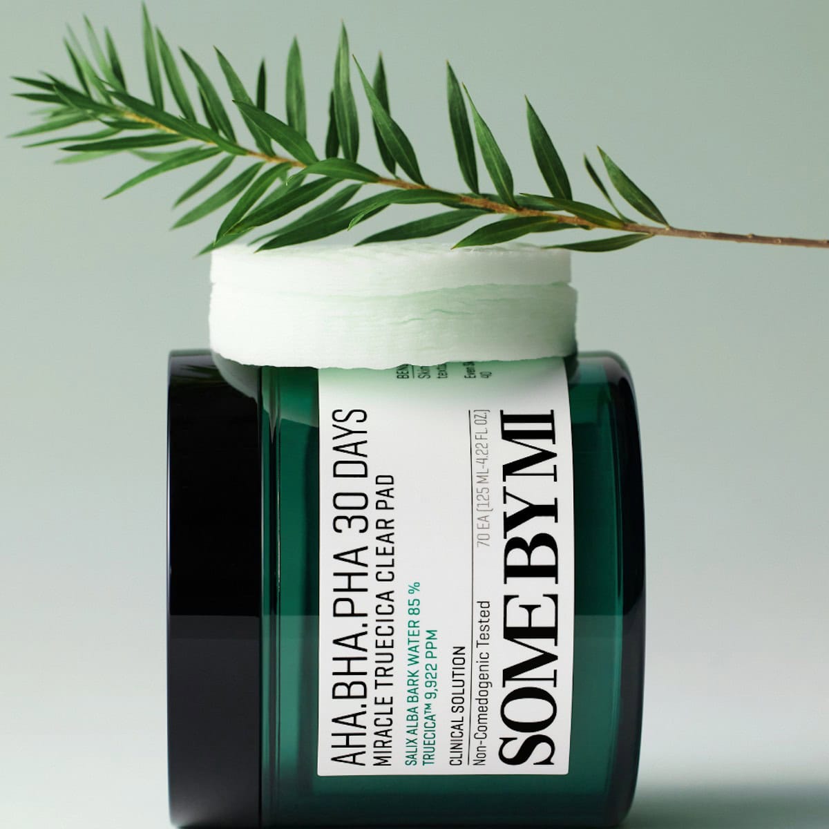 SOME BY MI Truecica Clear Pads gently exfoliate, calm, and refine pores with AHA BHA PHA, willow bark, centella, and tea tree for smoother skin.