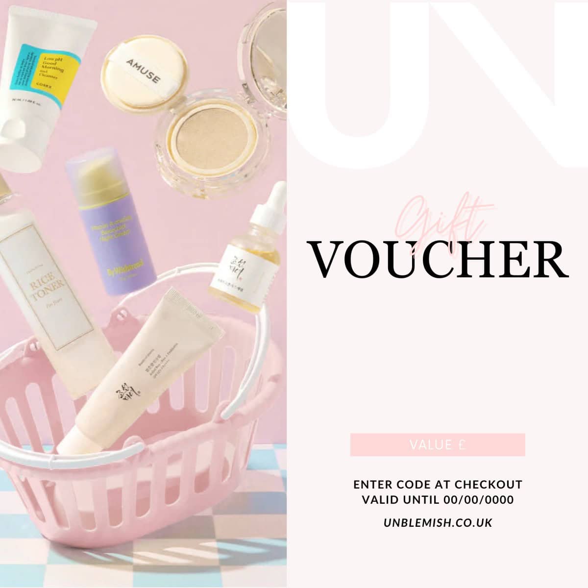 UNBLEMISH e-gift voucher – the perfect digital gift for skincare lovers, valid sitewide.