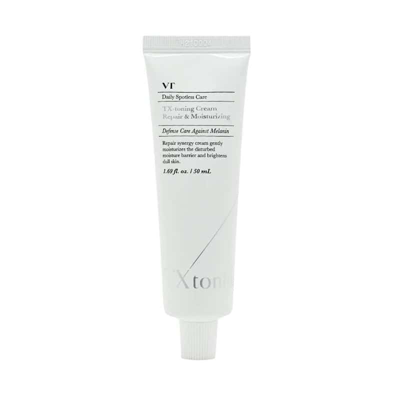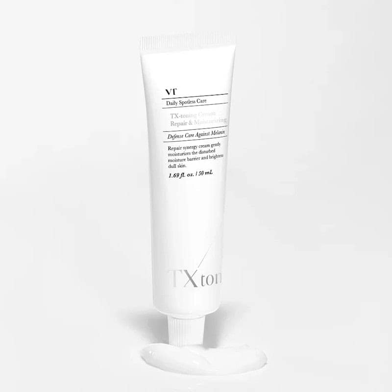 VT COSMETICS TX-Toning Cream fades dark spots and hydrates with tranexamic acid, niacinamide, glutathione, ceramide, panthenol, and centella.